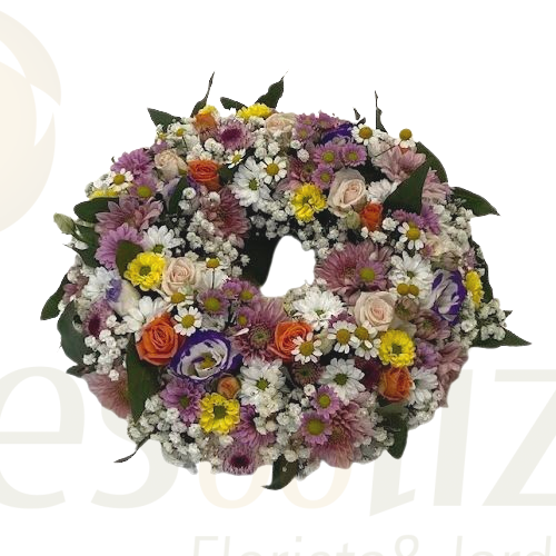 Coroa de Flores Naturais de homenagem, com flores da época campestres +/- 30cm de diâmetro (As flores utilizadas serão idênticas à imagem ou o mais similar possível dentro da flor disponível em loja no momento)
