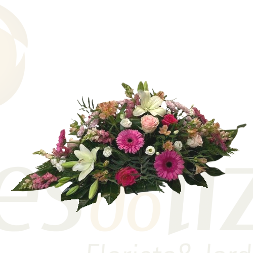 Palma Destapada de Flores Mistas em tons de Rosa, Branco etc +/- 90cm (As flores utilizadas serão idênticas à imagem ou o mais similar possível dentro da flor disponível em loja no momento)